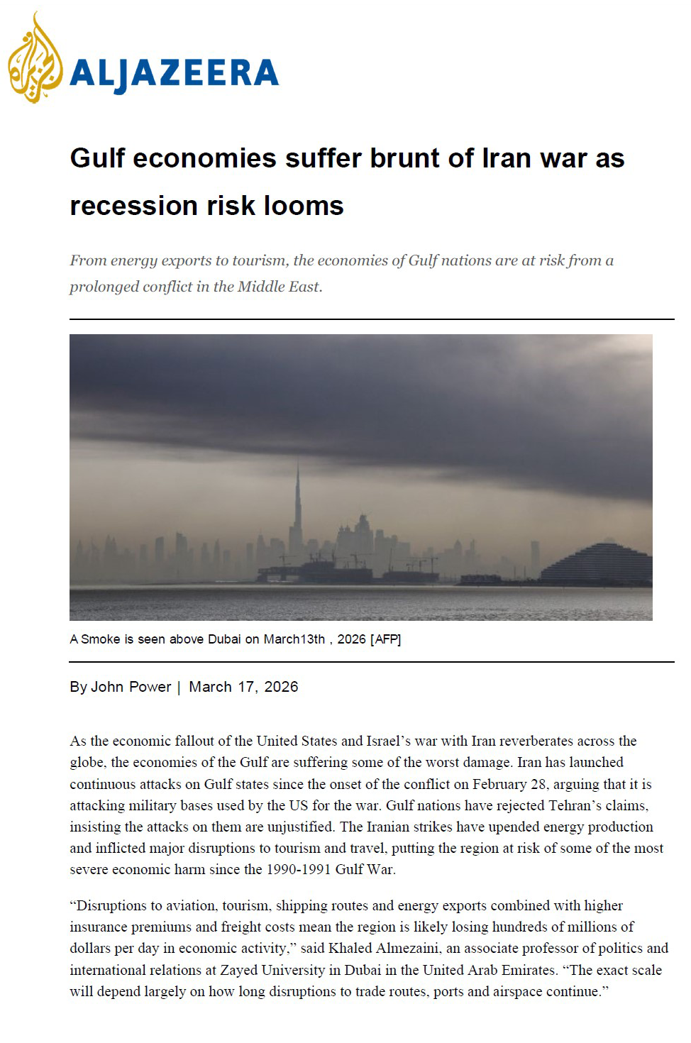 Now the six countries of the Gulf Cooperation Council (GCC) – Bahrain, Kuwait, Oman, Qatar, Saudi Arabia and the United Arab Emirates – are watching on nervously. The economic damage done by what has become a regional conflict, bringing an abrupt loss of stability, could be huge.